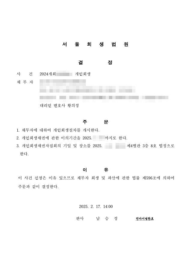 코로나 펜데믹 기간 중, 다니던 직장이 갑자기 폐업하면서 퇴직금도 받지 못한채 그만두고, 새 직장도 구하지 못하는 어려운 시기가 닥쳤습니다. 당시 큰 스트레스로 인해 지병인 당뇨가 크게 악화되어 아르바이트조차 할 수 없는 상태가 되었고, 결국 생활비 마련을 위해 받았던 대출이 끝없이 늘어나 개인회생을 신청하게 되었습니다.
