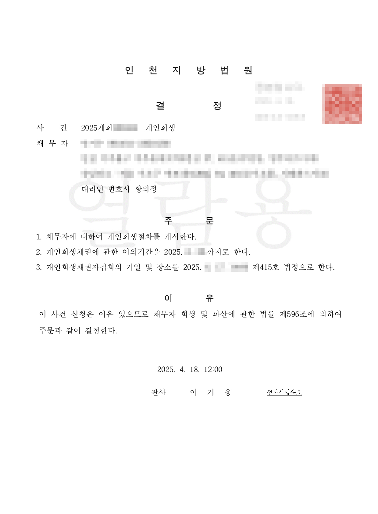 신청인의 경우 급여소득자였으나, 사업장 내 개인 실적에 따른 인센티브의 비중이 큰 편이었습니다. 개인 실적은 월 단위의 변동이 큰 편이었고, 인센티브의 지급 기준 또한 고정적이지 않은 상황이었기 때문에, 소득금액의 산정과 관련한 제반 사정 및 전년도 원천징수액 등을 소상히 정리하여 법원에 제출하였습니다.